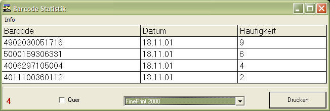 Minimallänge hat, und gleicht die Barcodenummer mit dem entsprechenden