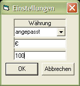 durch Fremdprogramme ausgewertet werden kann. Eine Einstellung auf eine beliebige Währung